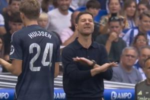 阿隆索從替補席上喊道:“難以置信!”。他怒火中燒:“這太不可思議了!”這位素來冷靜、沉著、嚴謹的男人罕見地展現了憤怒場景。這就是他目睹赫伊森被紅牌罰下時的反應——尤其是當發現VAR不會介入復核此次判罰時。技術沒有干預,希爾·曼薩諾的判罰維持原判。