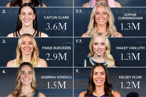 24直播網09月15日訊 WNBA賽季結束,球星社媒粉絲數排行出爐。里斯以510萬粉絲居首,克拉克、佩奇分列二、三位。新秀克拉克漲粉最多,達40萬。里斯、克拉克和佩奇穩居前三,其余球員粉絲數也有不同程度增長。