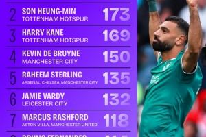 24直播網09月15日訊 自2017/18賽季以來,利物浦前鋒薩拉赫以273次直接參與(進球+助攻)高居英超榜首,大幅領先于熱刺的孫興慜(173球)和凱恩(169球)。德布勞內等球員位列其后。