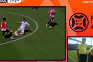 阿韋洛亞率領的卡斯蒂亞在對陣畢巴B隊的比賽中也遭遇了類似的爭議。比賽第36分鐘,由于塞斯特羅累計兩張黃牌被罰下,卡斯蒂亞不得不以10人應戰。這張紅牌同樣充滿了爭議??ㄋ沟賮喺埱蟛榭碫AR,主裁判大衛-洛佩斯也確實回看了這一動作。然而,皇馬替補席不敢相信眼前發生的一切,球員本人也搖頭否認,堅稱自己只是碰到了球。