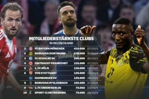 24直播網09月15日訊 德甲官方公布俱樂部注冊會員數量,拜仁以41萬會員高居榜首,多特以23萬會員緊隨其后。沙爾克、法蘭克福、科隆等傳統強分列其后,展現了德國足球深厚的群眾基礎。
